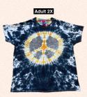 Golden Peace Sign with Grey on Black Tie Dyed T Shirt Adult 2X